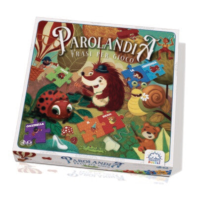 - 252 pezzi di puzzle, ciascuno con una parola della lingua italiana, colorati a seconda della categoria grammaticale
