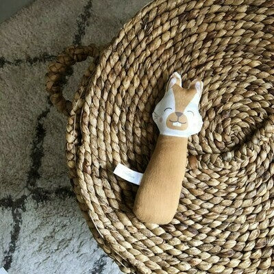 Son petit grelot tinte tout en douceur et sa forme allongée en double gaze de coton Oekotex permet à bébé de l’attraper facilement.