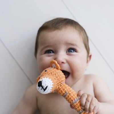 Facile à tenir en main, stimule le développement tactile et auditif des touts petits.
