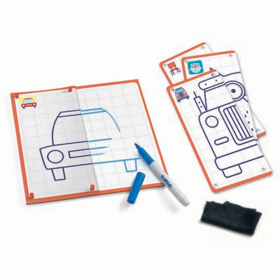 Comprend : 24 cartes, 1 planche effaçable et 1 feutre effaçable à sec. 1 chiffon.