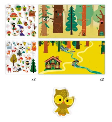 La pochette contient une pochette rigide contenant 2 grands panoramas et une cinquantaine de stickers vinyle repositionnables.