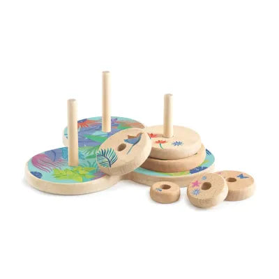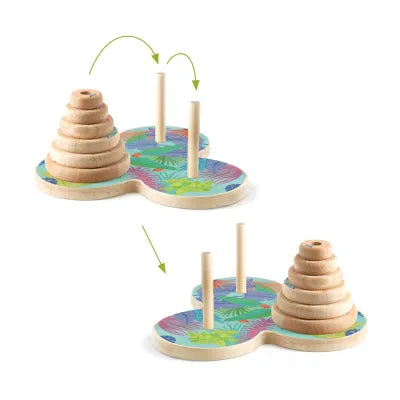 Un jeu traditionnel en bois dans lequel toute la Tour de Hanoï se déplace ! Mais comment le faire en respectant les règles de déplacement ? Solution fournie.