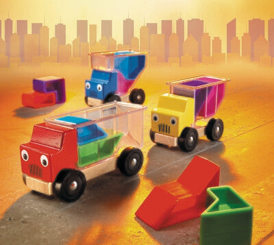 Les trois camions sont en chemin vers leur prochaine destination. Ils doivent transporter des affaires, mais ils ne savent pas si elles tiendront toutes dans leurs bennes transparentes.