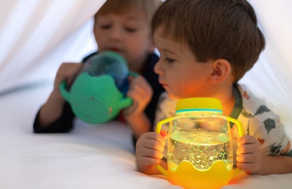 Les carafes sensorielles Glo Pals sont une expérience amusante. Il suffit de les remplir d'eau pour que la magie opère.
